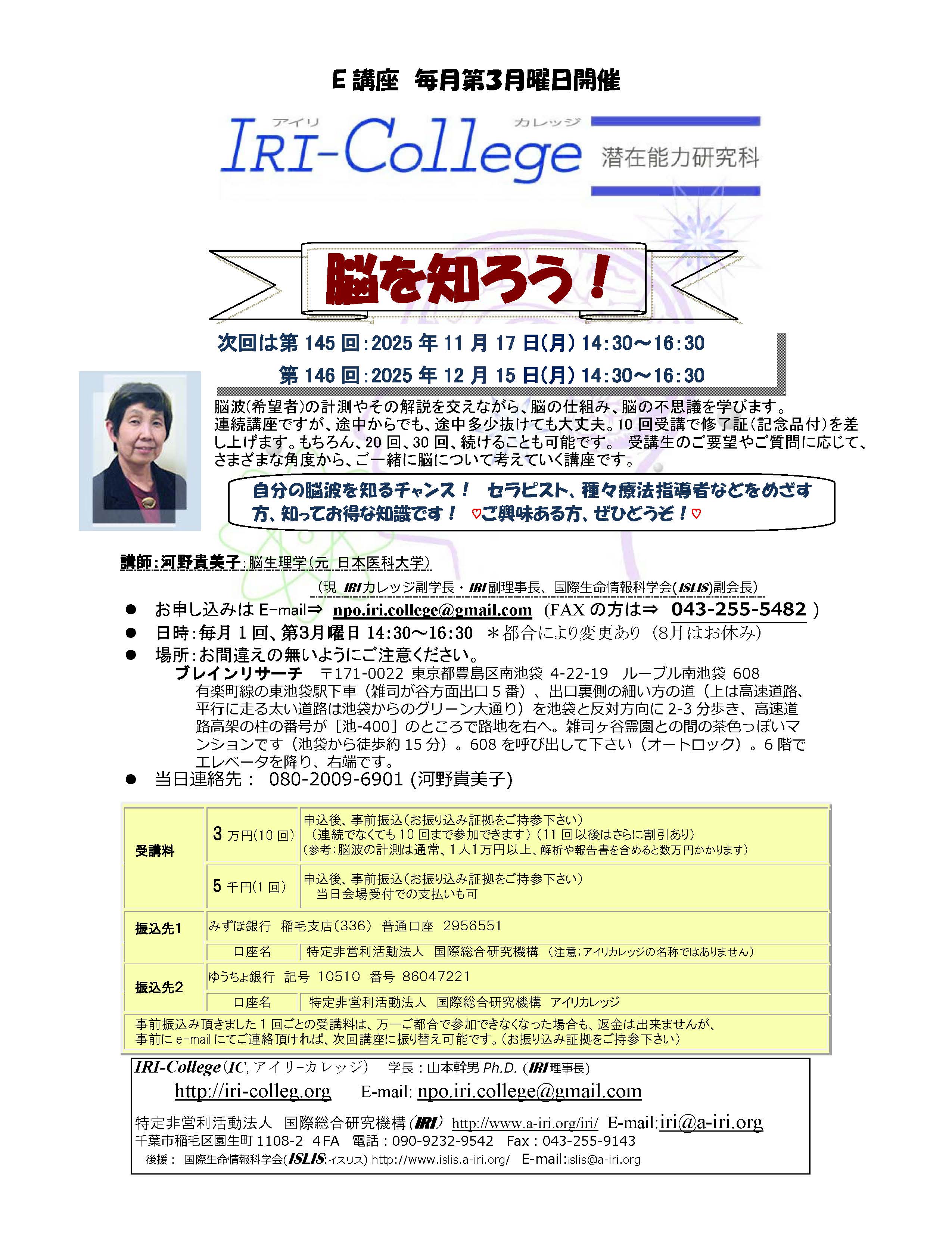 国際総合研究機構( IRI ) 理事長 山本幹男